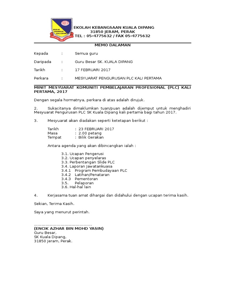 Surat Arahan Penubuhan Panitia. Pada zaman ini, di mana e-mel dan mesej teks telah pun mengambil alih trend menulis surat rasmi, tidak rasmi atau perniagaan, anda mungkin perlu mengetahui beberapa taktik yang berbeza untuk menulis surat. Ia semata-mata bergantung pada jenis surat bahawa kandungan yang ada untuk diletakkan atau diberi penekanan dalam perenggan utama surat itu.